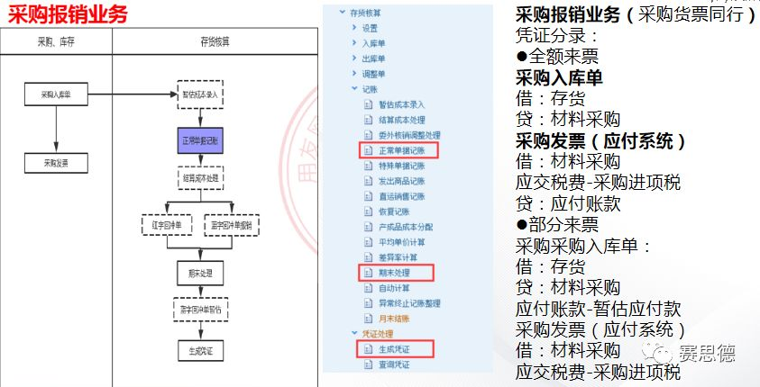 老師將這兩種業務畫了一個清晰的流程圖,并將每個節點對應單據生成的憑證列舉出來,給大家梳理一遍。最后還將采購結算余額表與暫估材料商品余額表對賬,材料采購科目對賬的詳細思路與步驟進行總結,下次大家再遇到這個問題就不會束手無策啦。